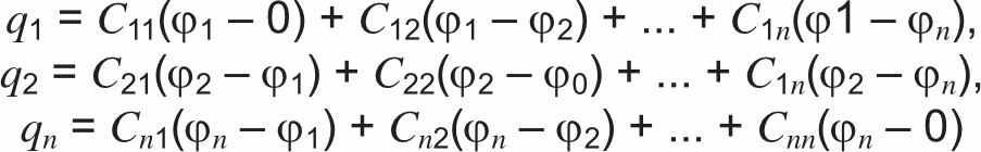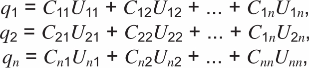 Выразим заряды q через емкостные коэффициенты. Зная потенциальные коэффициенты α, можно определить емкостные коэффициенты β по формуле: