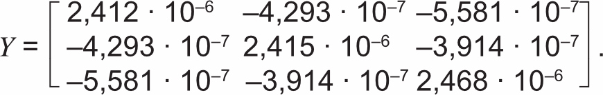 Матрица погонных поперечных емкостных сопротивлений имеет следующий вид: