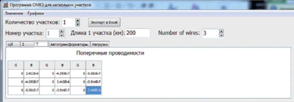 Для выполнения расчета в программе «Определение места повреждения» [26] необходимо сформировать погонные емкостные проводимости:
