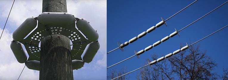 - Защита линии монтируется непосредственно на провода линий электропередачи, телекоммуникационные и оптоволоконные кабели. Вращающиеся элементы препятствуют перемещению по проводам белок, змей, птиц, обезьян, ленивцев и других животных, предотвращая их попадание в отсеки трансформаторов и коммутационного оборудования.